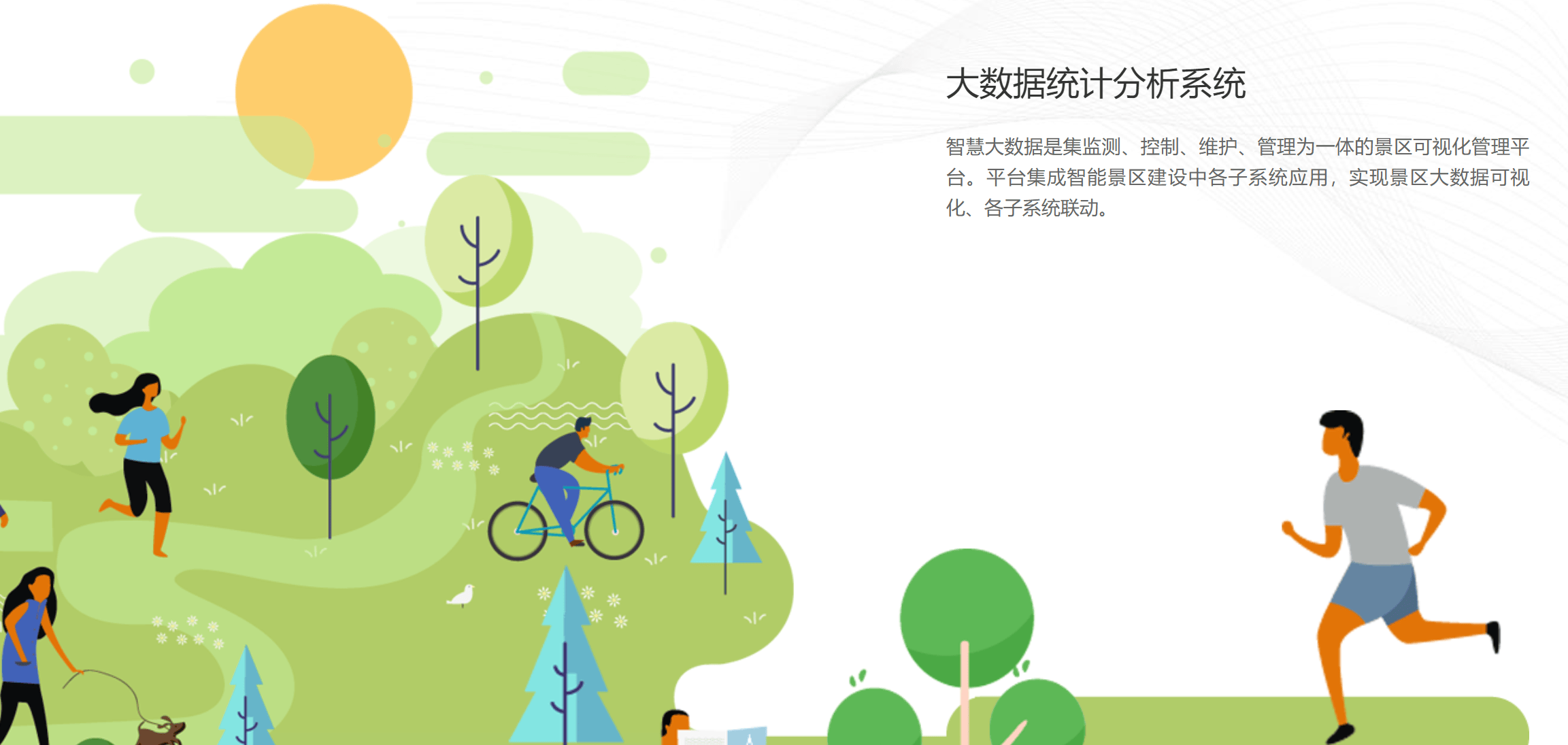 智慧大数据是集监测、控制、维护、管理为一体的景区可视化管理平台。平台集成智能景区建设中各子系统应用,实现景区大数据可视化、各子系统联动。